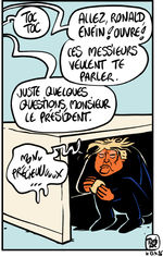 A priori, je ne fais pas trop dans le dessin politique, mais un président orange qui accumule les facéties m'a obligé, en fait j'aime bien faire ça. Ca devrait pas mal tourner autour de lui.