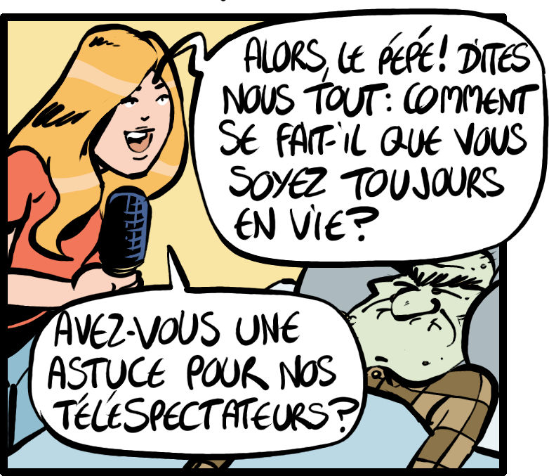 Une nouvelle petite BD en une pageTomi Ax6 juil. 20241 min de lectureDernière mise à jour : 16 déc. 2025 Une équipe de télévision rend visite à Marcelin Vermichou